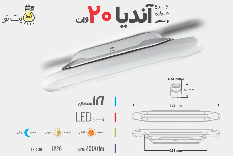 -12%چراغ دیواری 20 وات پارس لایت مدل آندیا از تولیدات شرکت خوشنام پارس میباشد. محصولات چراغ دیواری شرکت پارس، در حوزه تولید انواع روشنایی بسیار باکیفیت و مناسب برای استفاده در محیط مسقف و سرپوشیده است. قاب مهتابی 20 وات پارس لایت از نوع اف پی ال – FPL – بوده و در آن از لامپ ال ای دی (LED) استفاده شده است. البته بدلیل استاندارد بودن، محصول دارای 18 ماه گارانتی شرکتی است. برند پارس این کالا را بصورت مدرن و متفاوت از مهتابیهای سنتی طراحی کرده است. متریال مصرفی محافظ لامپ، از جنس پلی کربنات و مقاوم در برابراشعه UV است. بدنه این محصول نیز از جنس PBT و مقاوم در برابر حرارت میباشد. در پشت لامپ از هیت سینک آلومینیومی جهت تبادل حرارتی بهتر استفاده شده است. همچنین در مدل آندیا درایور جریان ثابت نصب و البته درایور و لامپ قابل تعویض میباشند.